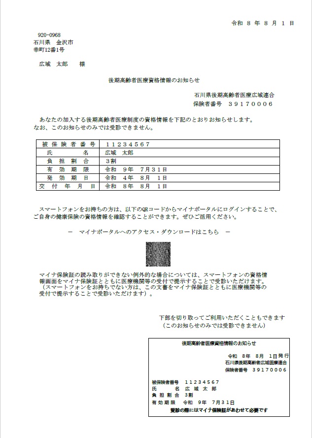 ※資格情報のお知らせのみで医療機関を受診することはできません。